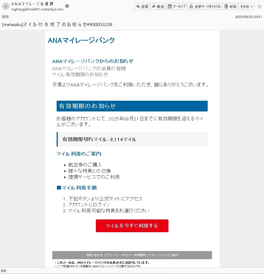 From: ANAマイレージ会員課 <rsgtmpgj@mail001.matarhjul.com> Using Cybozu(R) Garoon(R)