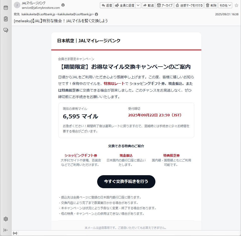 From: JALマイレージバンク <service@jall.mybrostore.com>