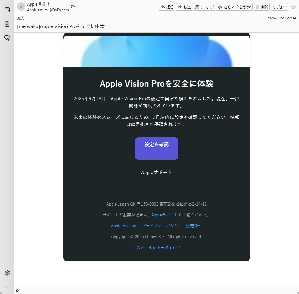From: Apple サポート <Apple.smurai@DoFq.com>