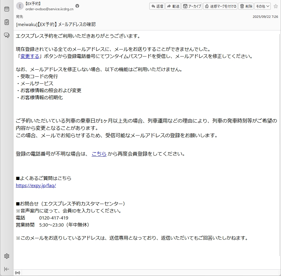 From: 【EX予約】 <order-ovdsxs@service.iicdrg.cn> Using Foxmail 6, 13, 102, 15 [cn]