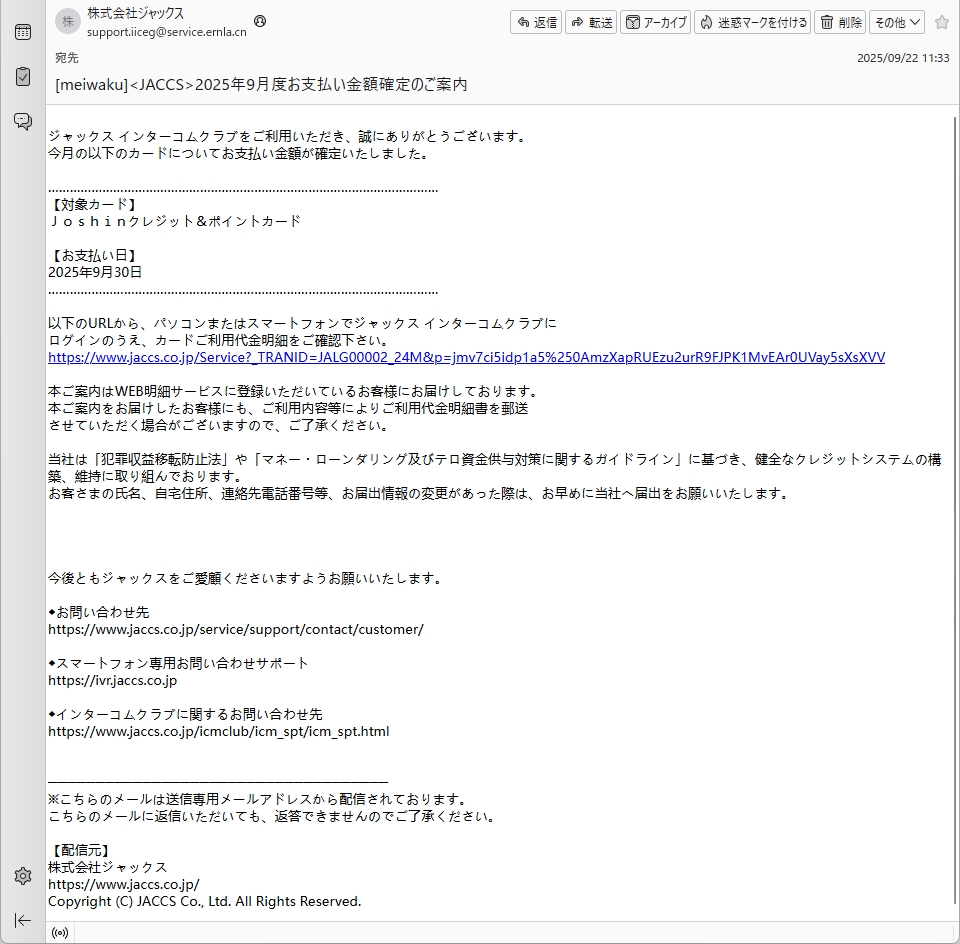 From: 株式会社ジャックス <support.iiceg@service.ernla.cn> Using Foxmail 6, 13, 102, 15 [cn]