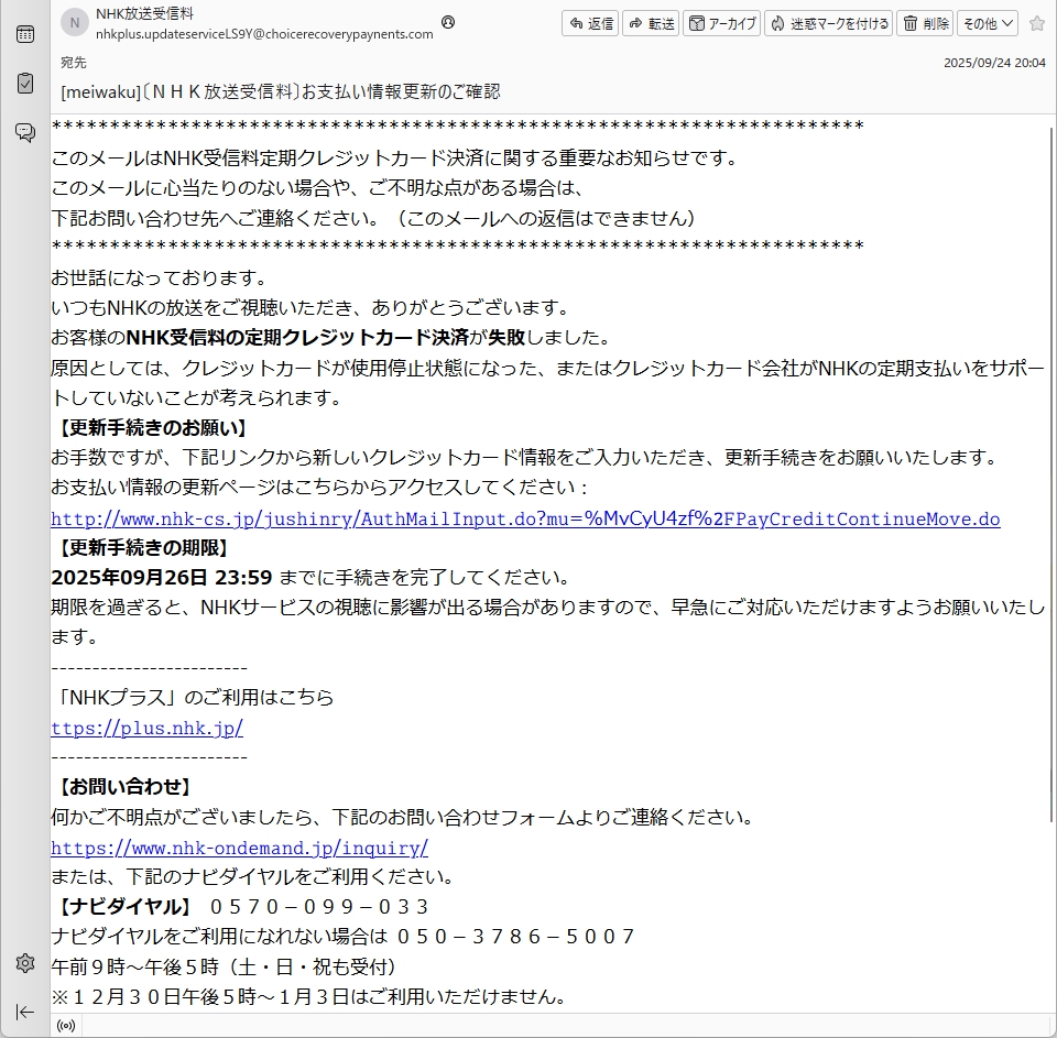 From: NHK放送受信料 <nhkplus.updateserviceLS9Y@choicerecoverypaynents.com>