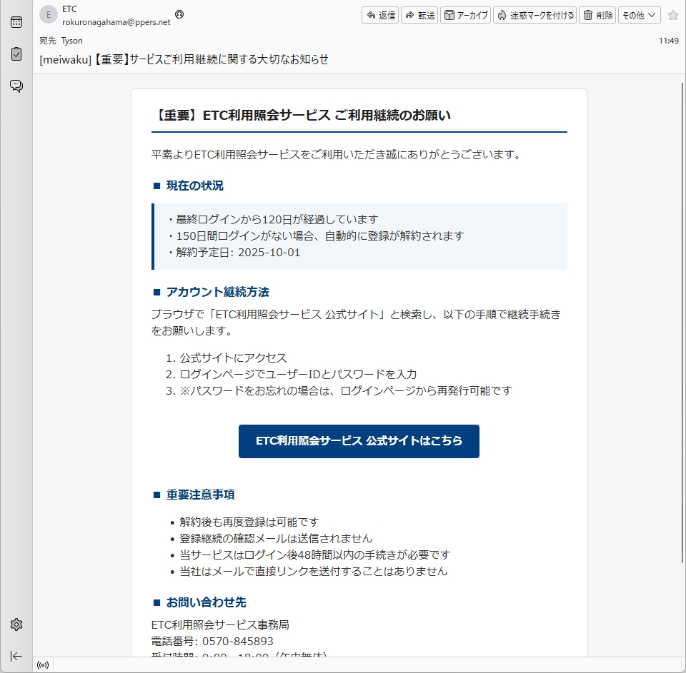 /// フィッシング詐欺メールです! ///