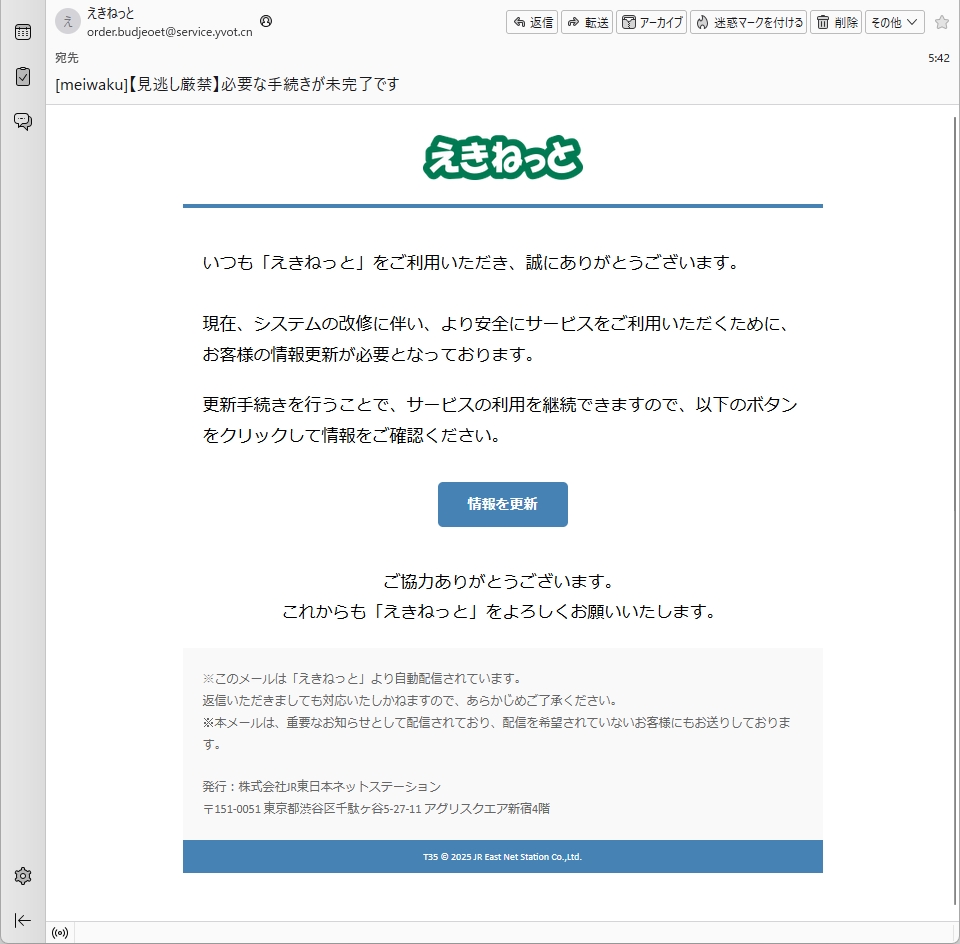 From: えきねっと <order.budjeoet@service.yvot.cn> Using Foxmail 6, 13, 102, 15 [cn]