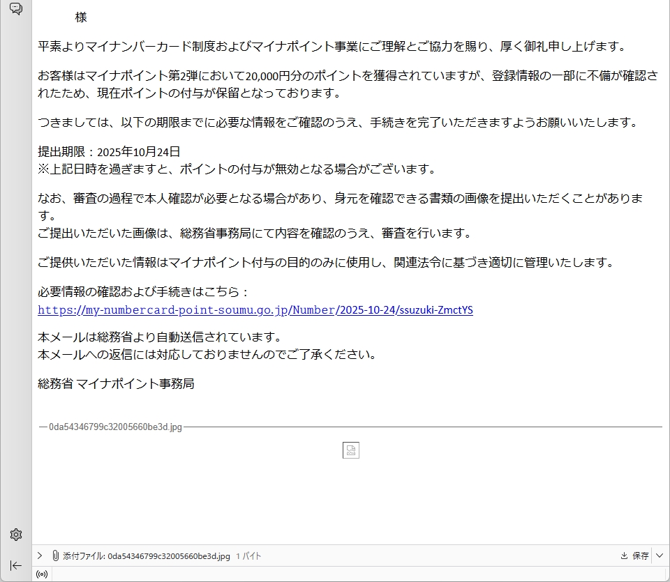件名: マイナポ​イン​ト付与確認のお願い【総​務​省 マイナポ​イン​ト事務局】‌KO-48368994126