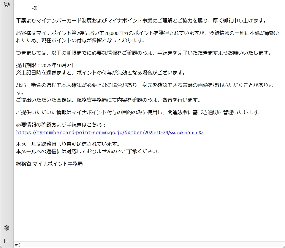 From: 総務省 マイナポイント事務局 <MynumbercardPointSoumuVk9heMail@uxeucxl.com>