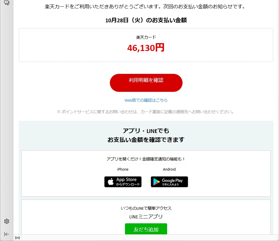 From: 楽天カード株式会社 <Rakuten-UgMf@g.softbank.co.jp>
