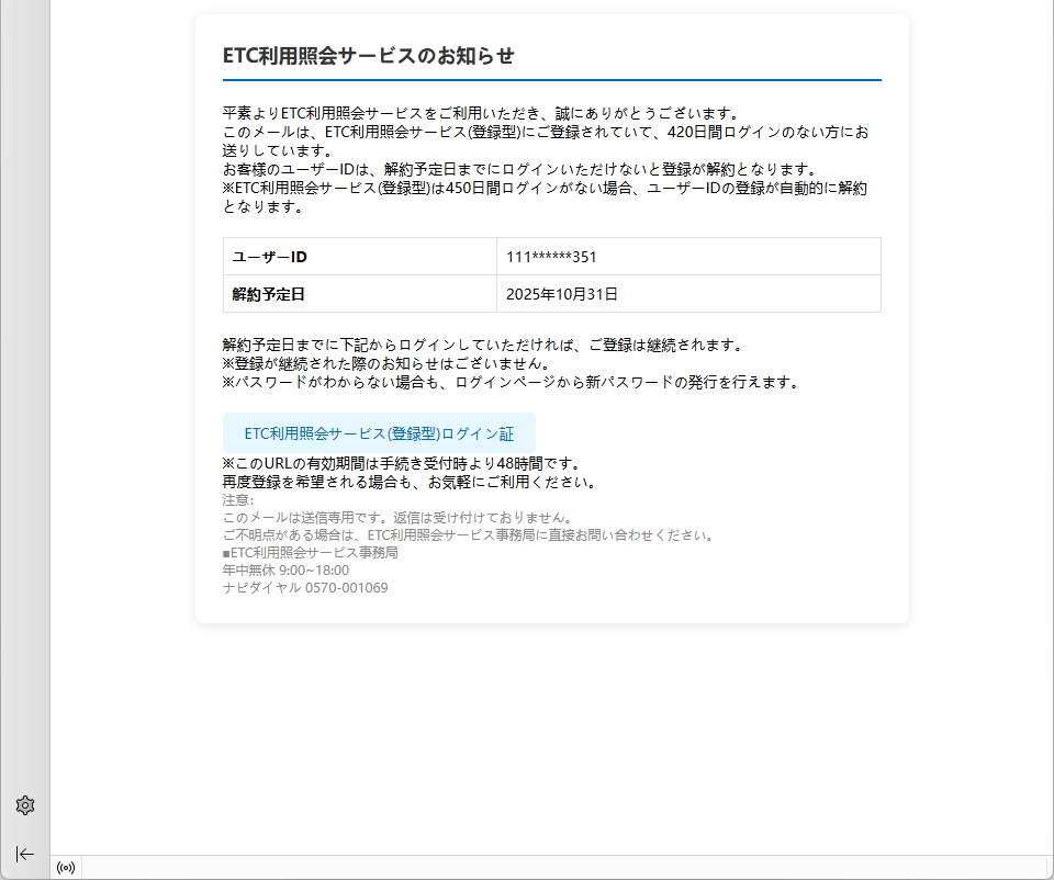 From: ETC利用照会サービス事務局 <my-etc@cdlytox.cn> Using Foxmail 6, 13, 102, 15 [cn]
