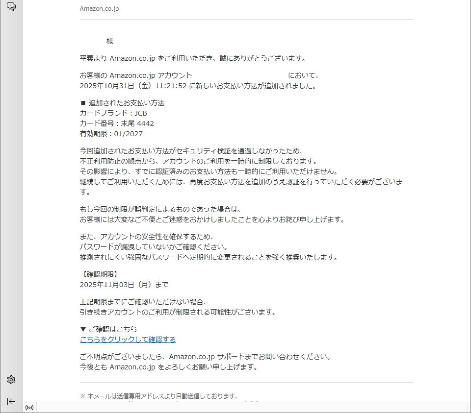 /// フィッシング詐欺メールです! ///