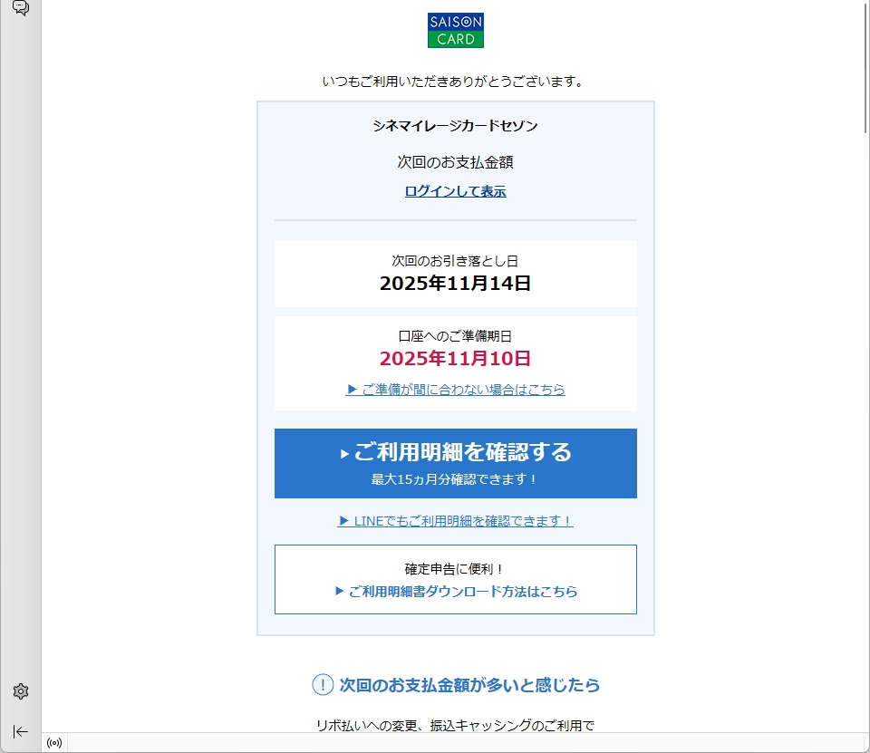 From: セゾンカード <notice.pkravrcr@service.ajlpcw.cn> Using Foxmail 6, 13, 102, 15 [cn]