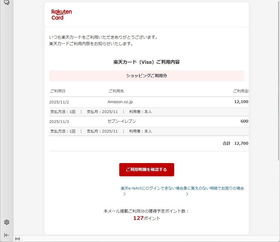 From: 楽天カード株式会社 <p0mlstbzi8r@gobcr.com> Using Foxmail 8.0.0.0000