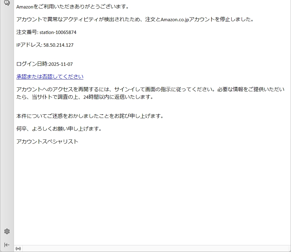 /// フィッシング詐欺メールです! ///