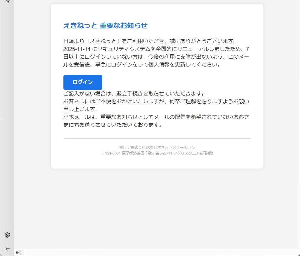 From: えきねっと <no-reply.ufskvnsq@bcwenne.cn> Using Foxmail 6, 13, 102, 15 [cn]