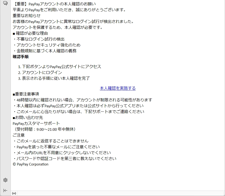 /// フィッシング詐欺メールです! ///