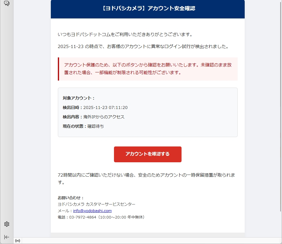 /// フィッシング詐欺メールです! ///