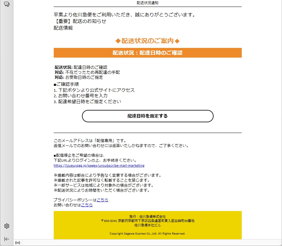 From: 佐川急便 <postmaster@security-trading.com> Using OCZGNPYVNVB BXWEYEQX ZVJDJMXGPP 392.3286