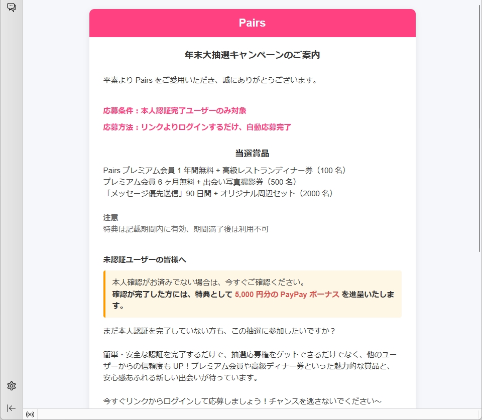 From: Pairs サービス運営チーム <helpo@zone-ouyisports.com>