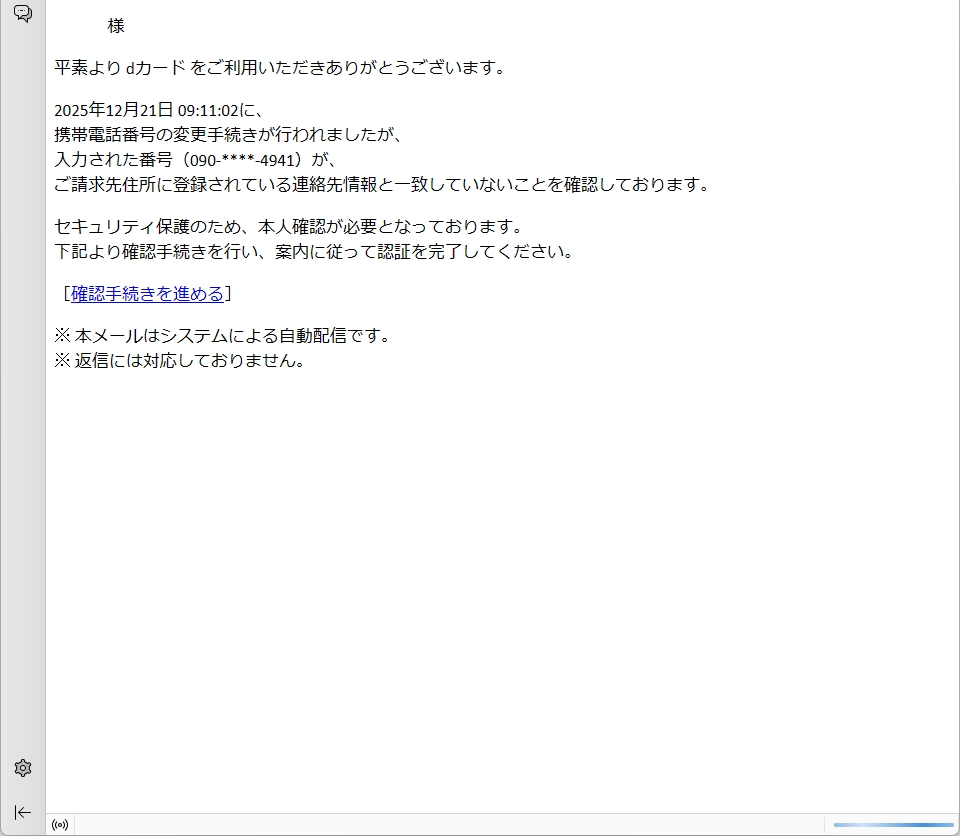 /// フィッシング詐欺メールです! ///