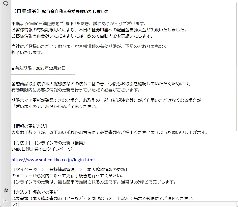 /// フィッシング詐欺メールです! ///
