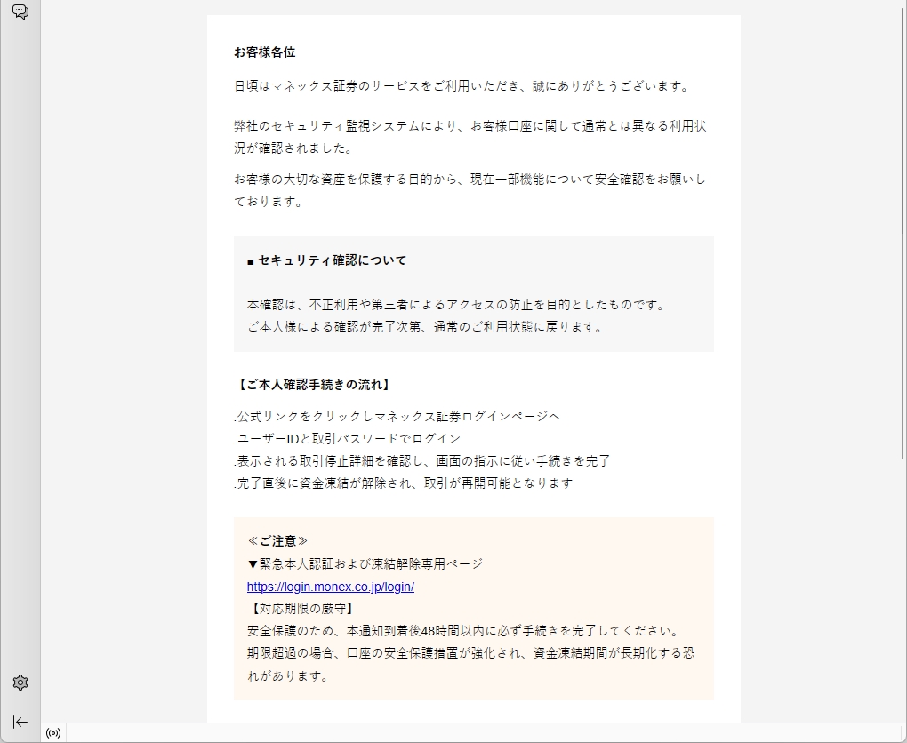 /// フィッシング詐欺メールです! ///