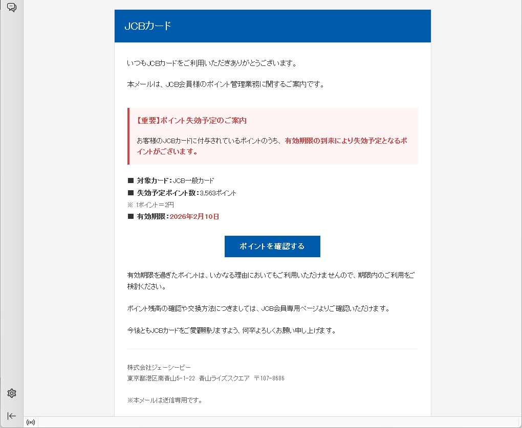 From: " JCBポイントのお知らせ " <server@mirakibeautycare.com>