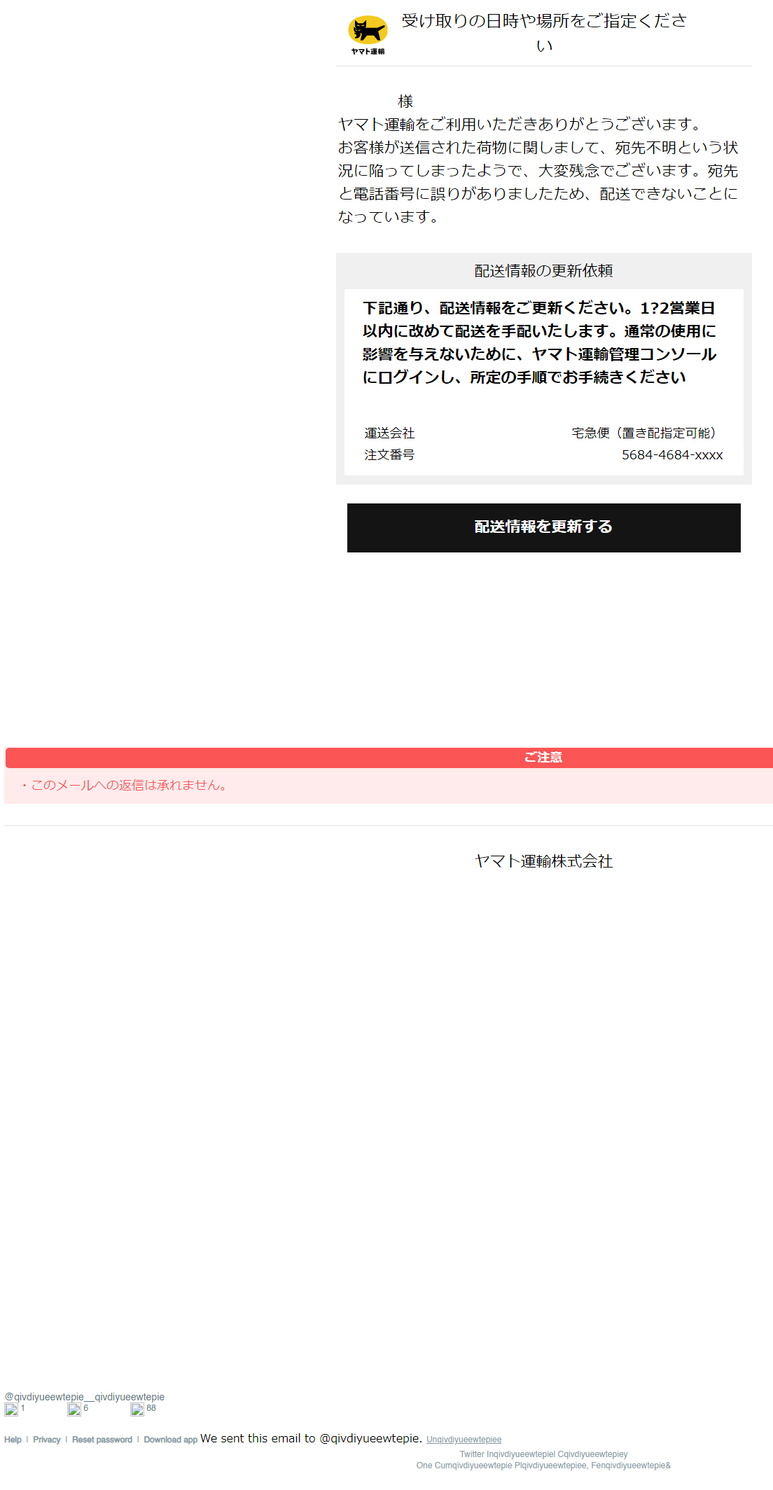 差出人: ヤマト運輸株式会社 <Farrell-*******@maldonado-start.brainby.com>