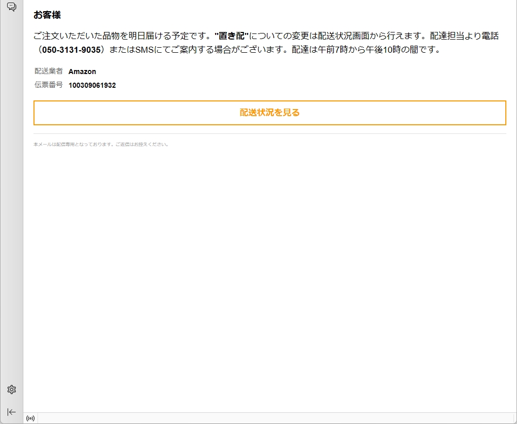 From: 配送お知らせ係 <noreply@mta388.clwxty.com> Using iPhone Mail (14F89)