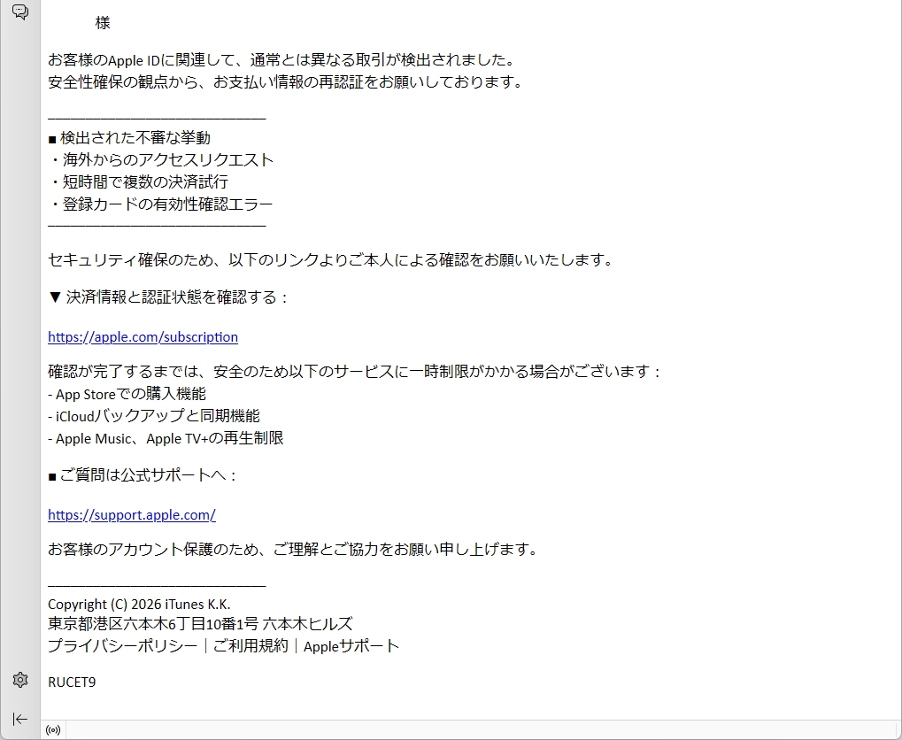 /// フィッシング詐欺メールです! ///