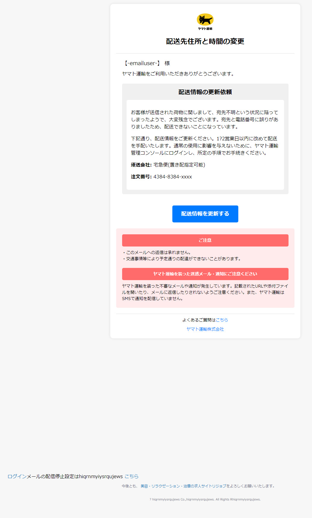 差出人: ヤマト運輸株式会社 <Foster-*******@jackson-head.pacspam.com>