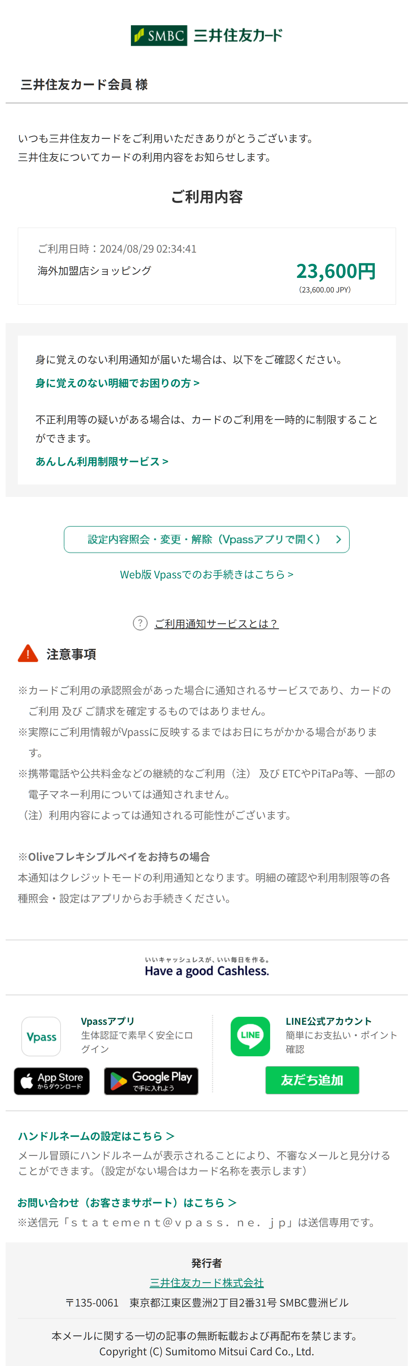 差出人: セゾンカード <team@shballet.jp>