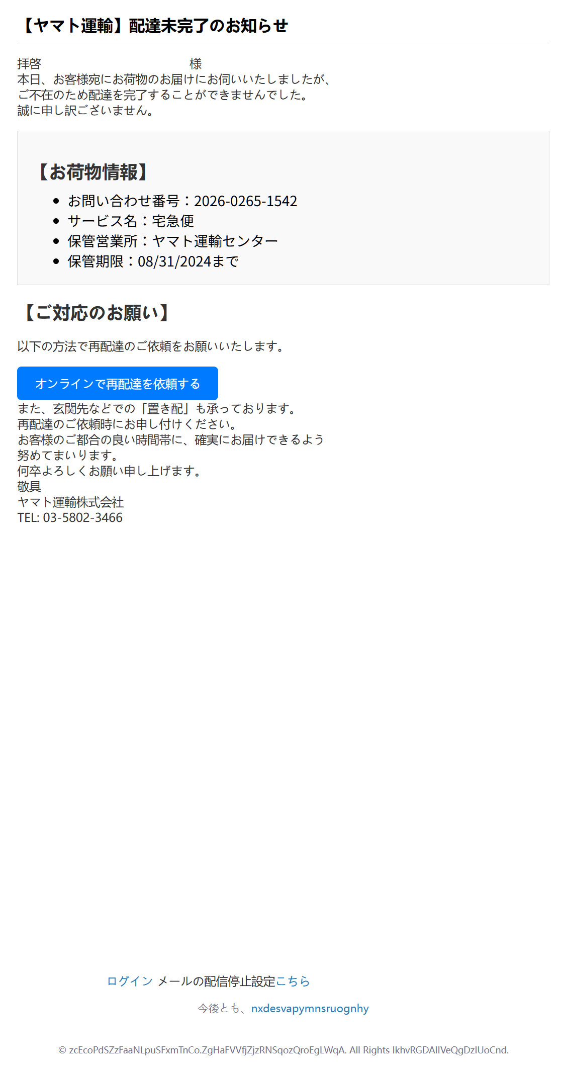 差出人: ヤマト運輸株式会社 <business-*******@creema.jp>