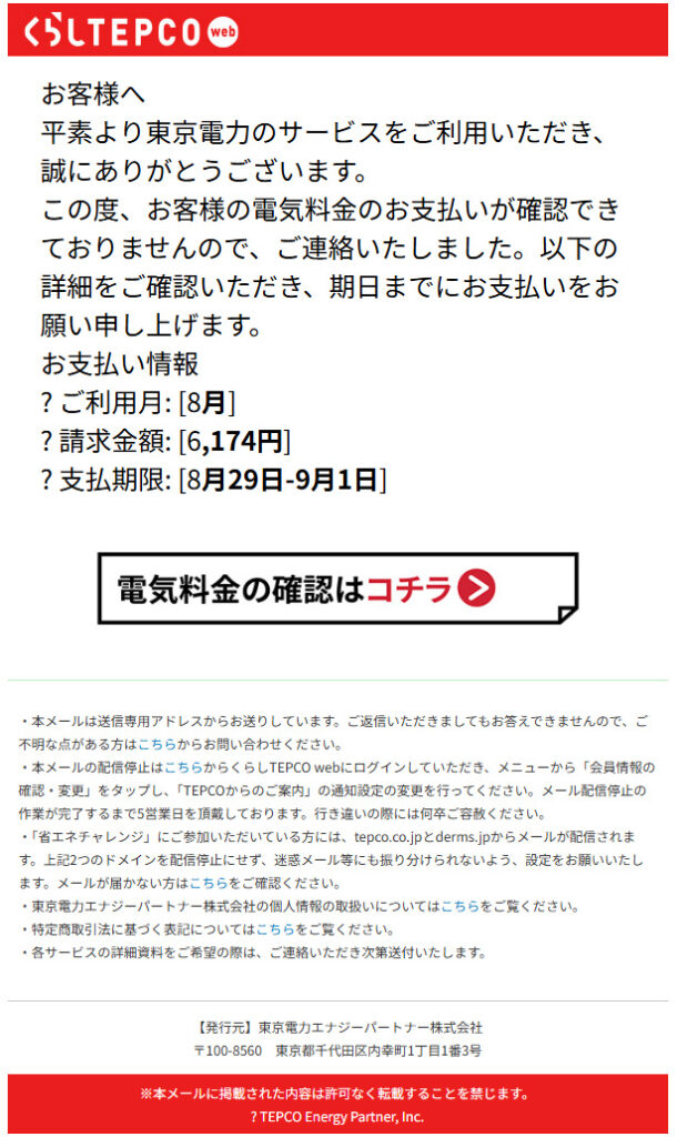 差出人: 東京電力カスタマーサービス <noreply@meisai.jp>