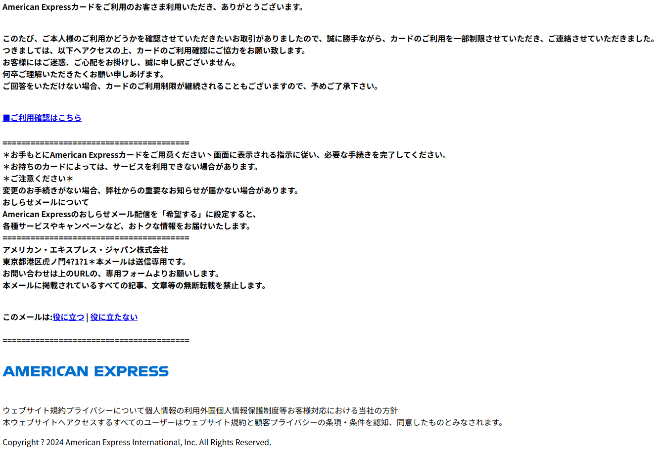差出人: =?utf-8?q?=EF=BB=BF_AMERICAN_EXPRESS_=3Camericanexpress=40jhkabm=2Eshop=3E?=