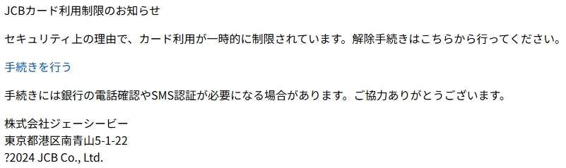 差出人: JCBカードサイト <MyJCB-Email.5*******5pM1@creema.jp>