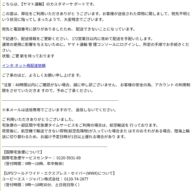 差出人: ヤマト運輸 <charlotteykmjj@ertfdgh.com>