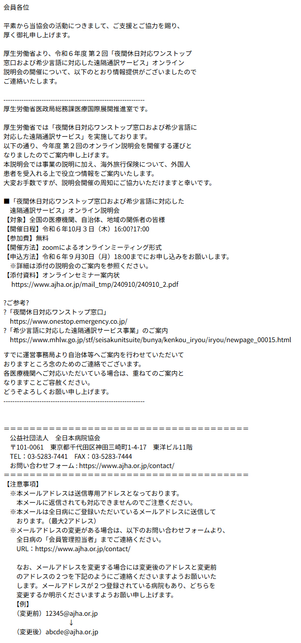 差出人: 全日本病院協会 <Consider-*******@creema.jp>