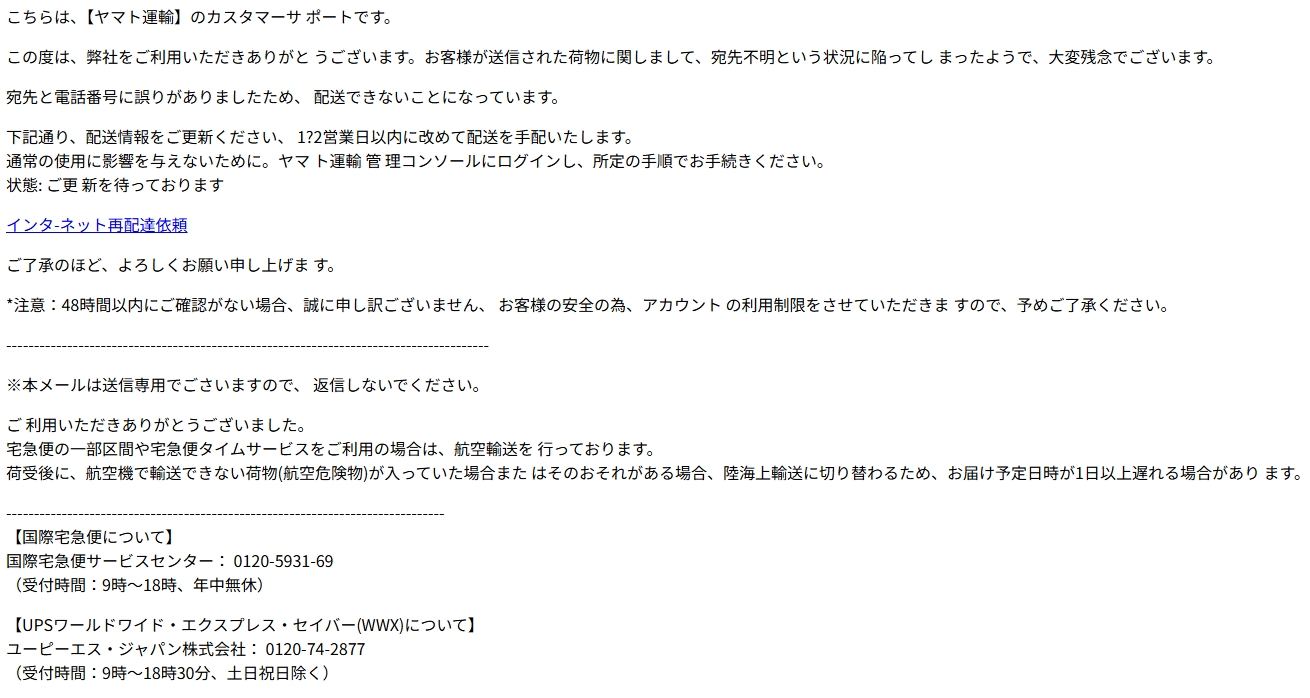 差出人: ヤマト運輸 <annabelleimjja@smbjxijw.com>