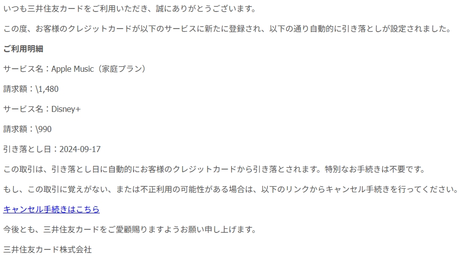 差出人: 三井住友カード <vpass-statement.Bc8*******b8@creema.jp>