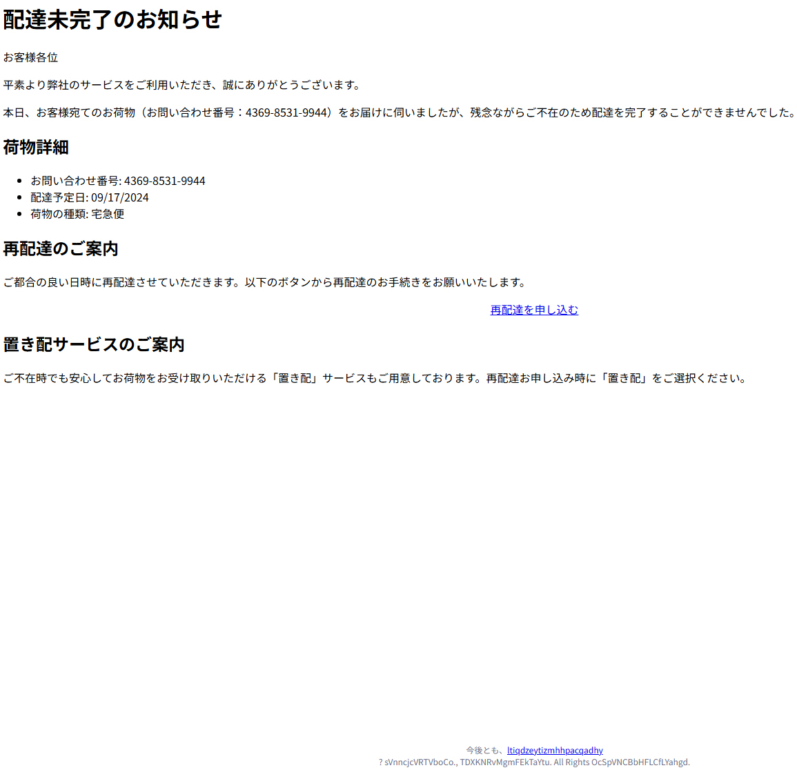 差出人: ヤマト運輸株式会社 <Jocund-*******@creema.jp>