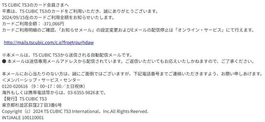 差出人: MY TS CUBIC <TS3-card@service.qclive.net>