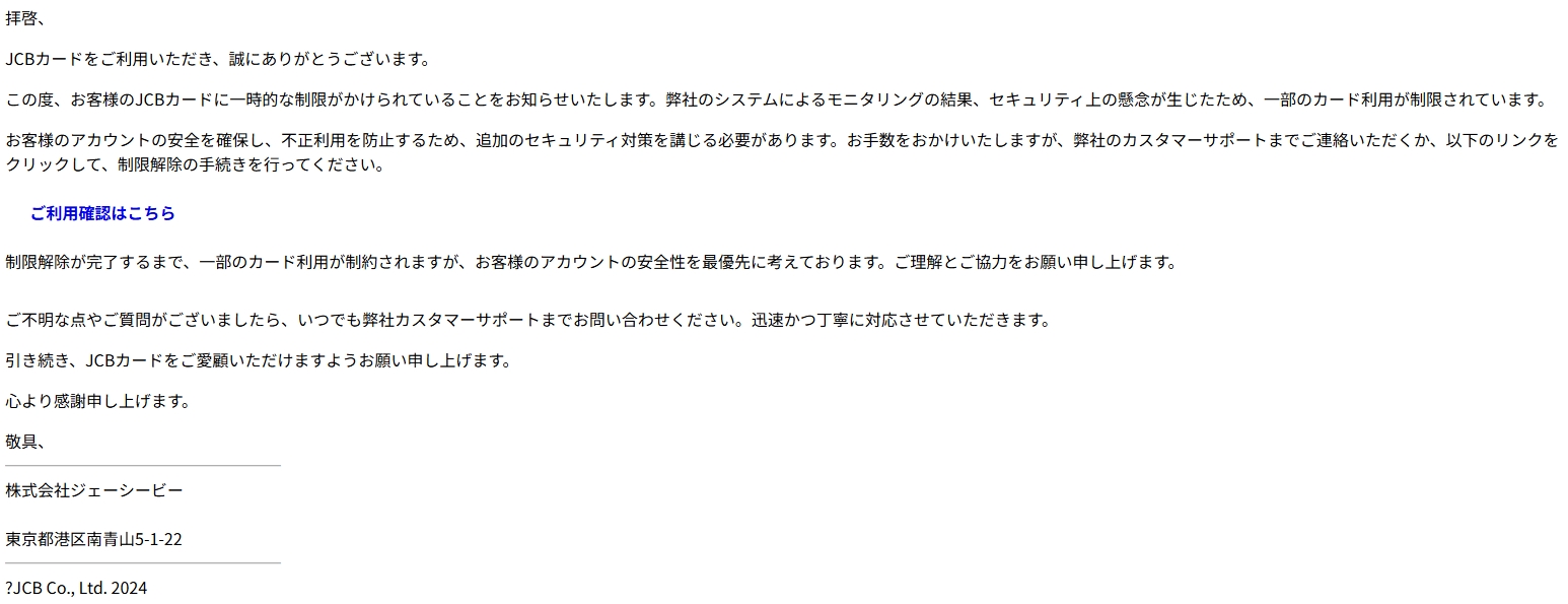差出人: MyJCB <jcb-Email.5*******5pM1@creema.jp>