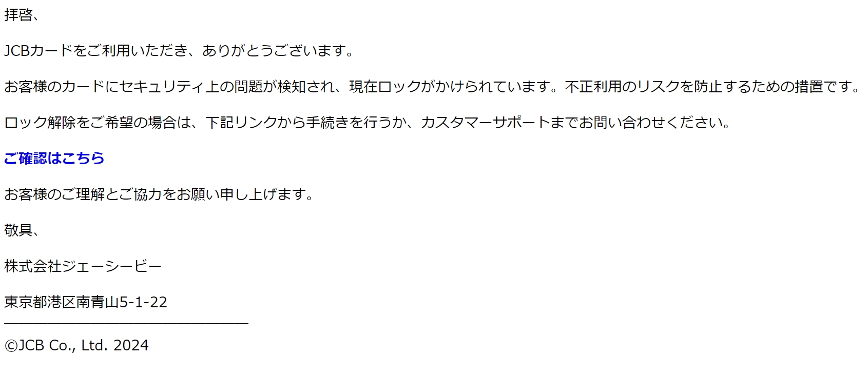 差出人: MyJCB <jcb-Email.3*******5M1p@creema.jp>