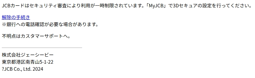 差出人: 【JCBカードサイト】 <MyJCB.email.uU3*******U3@gilt.jp>