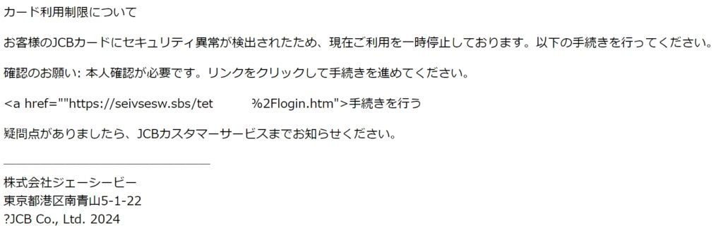 差出人: 【JCBカード】 <qa.jcb.security.Vw2mailV2@gilt.jp>