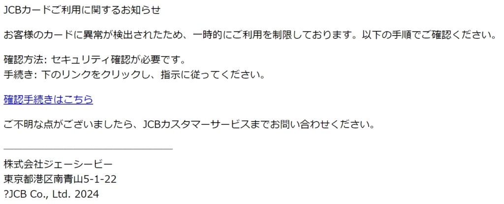 差出人: 【JCBカード】 <qa.jcb.security.gH9mailG9@gilt.jp>