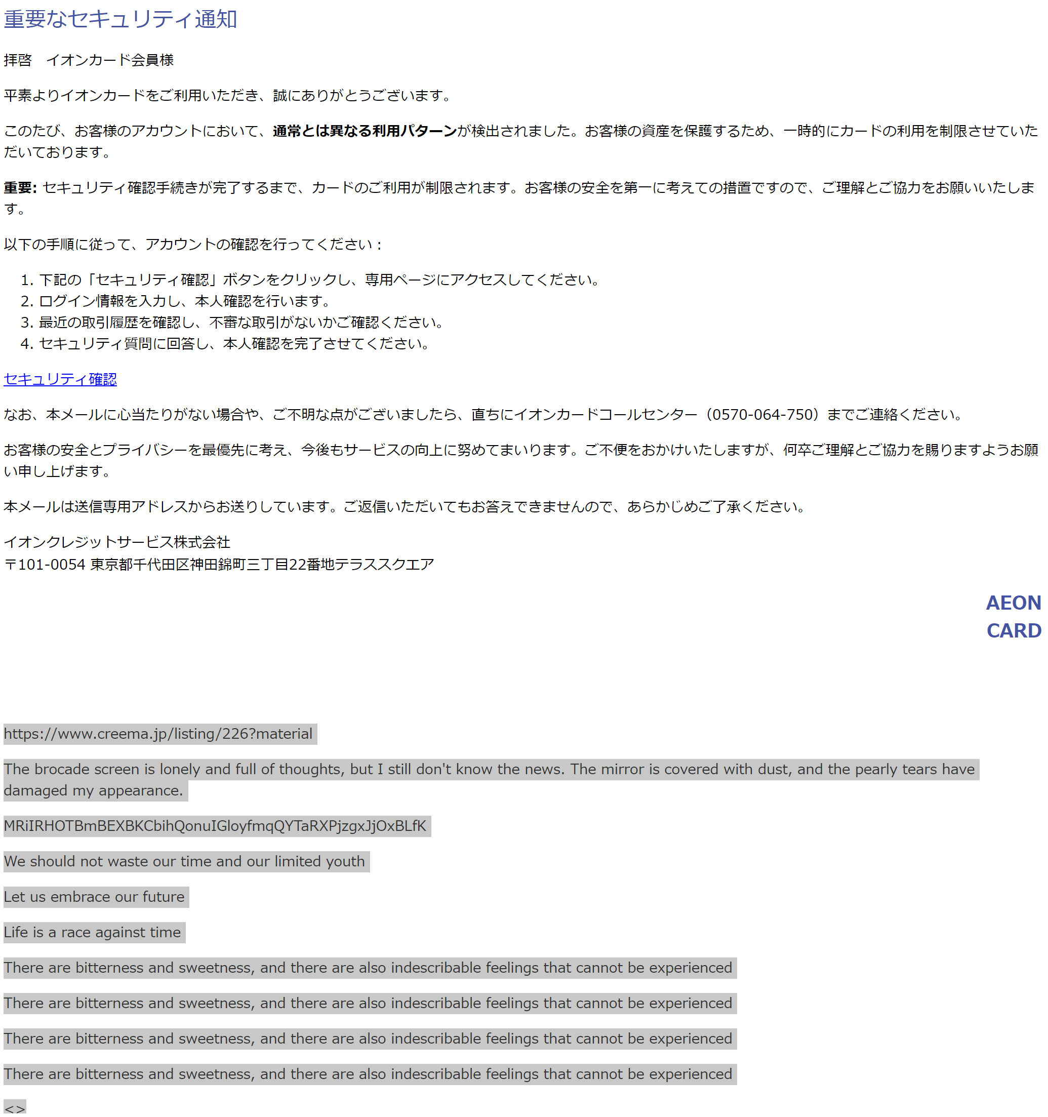 /// フィッシング詐欺メールです! ///
