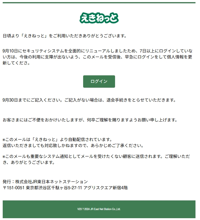 差出人: えきねっと <eki-net@l8jpczuqmx.com>