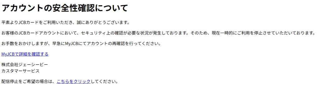 差出人: MyJCB(サイト・アプリ) <my.jcb.security.iJ1mailI1@costcojapan.jp>