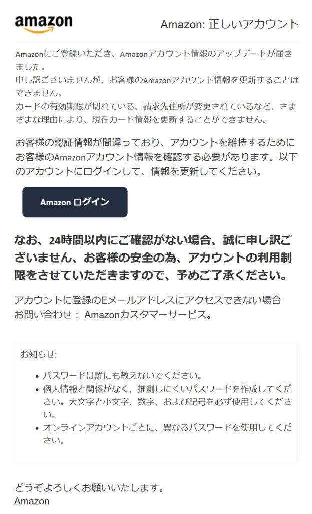差出人: アマゾン <J-*******@dipmail.hatarako.net> 日時: 2024年2月3日 12:18 送信日時: 2024年2月3日 12:18