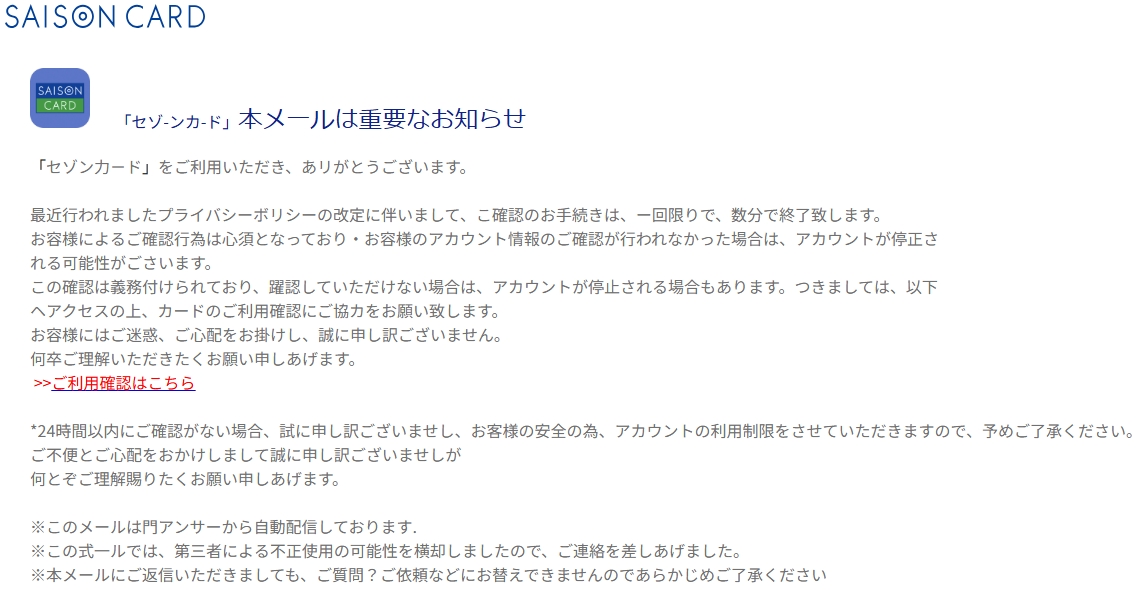 差出人: SAISON CARD <SAISON-Email1*******@giltcity.jp>